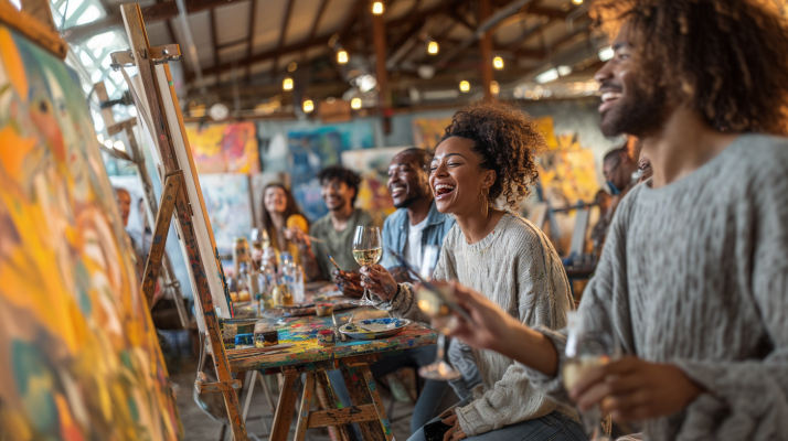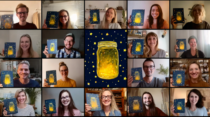 We offer both in-person and virtual classes with everything included: supplies, easels, step-by-step designs, and our team of friendly instructors. Group sizes can be as small as a private class or as big as 350 guests.